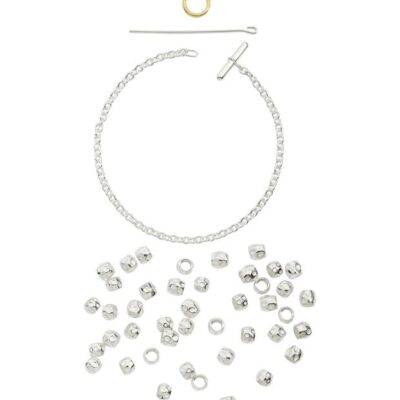 Bracciale, granelli e ago in argento. Anello brisé in oro giallo 18 kt.