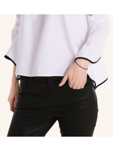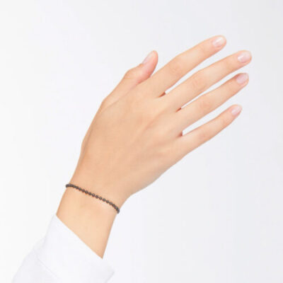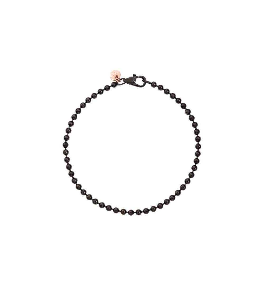 Bracciale bollicine in acciaio e pvd nero con piastrina in oro rosa 9K.
