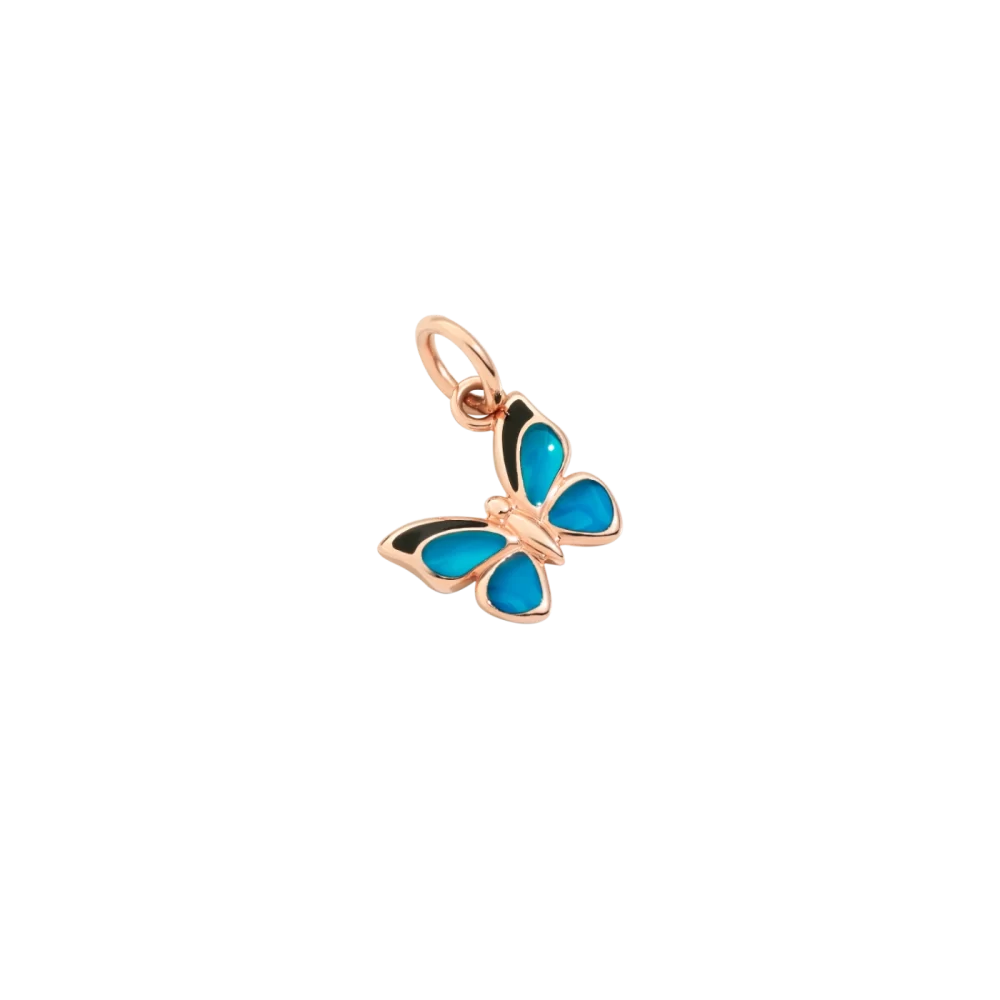 Charm Farfalla in oro rosa 9K e smalto blu. Cordino nero incluso.