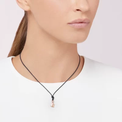 Ciondolo lettera R in oro rosa 9K – modello grande. Cordino nero incluso.