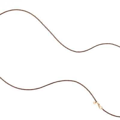 Collana in argento laccato marrone con chiusura e placchetta in oro rosa 9kt. Lunghezza 80 cm.