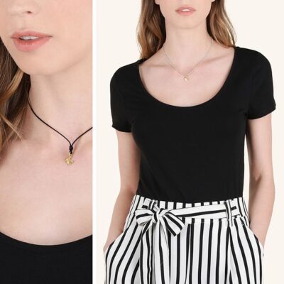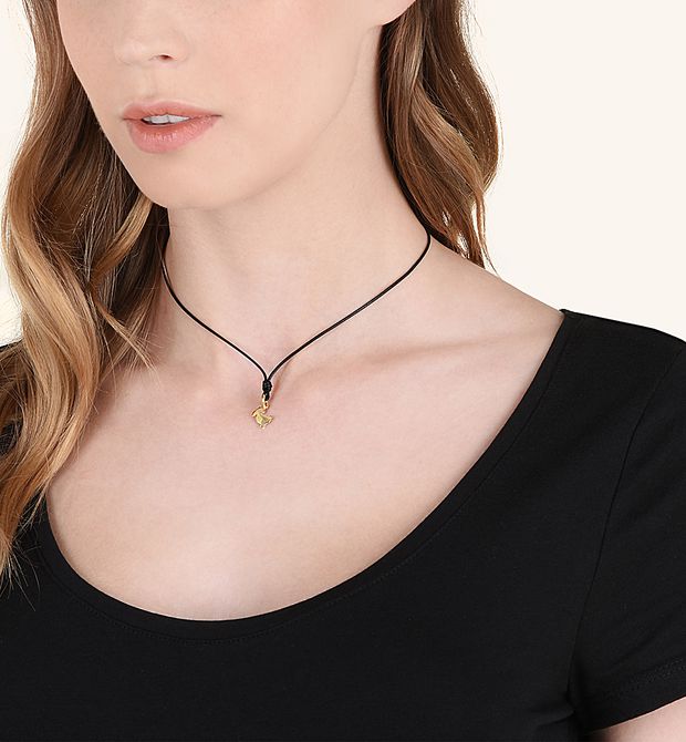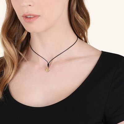 Ciondolo in oro giallo 18 kt. Cordino nero di presentazione incluso.