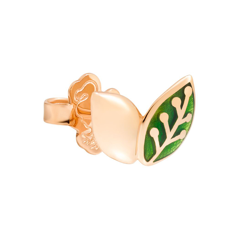 Orecchino Donna Dodo Foglia in oro rosa 9 Kt e smalto verde.