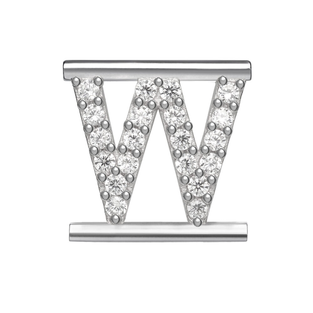 Elemento singolo lettera alfabeto per bracciale rigido “Modo” in argento 925 e zaffiri bianchi