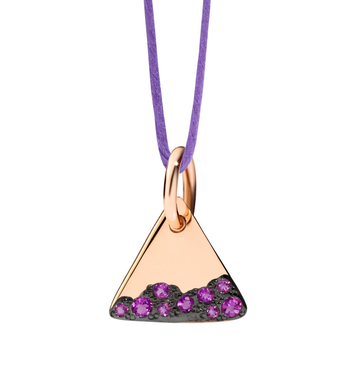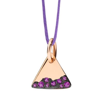 Ciondolo in oro rosa 9 kt con ametiste CT 0,06. Cordino viola di presentazione incluso.