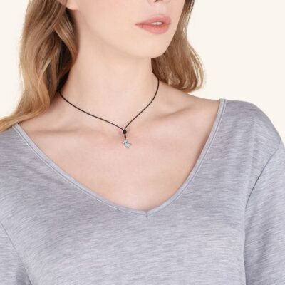Ciondolo in oro rosa 9 kt e smalto azzurro. Cordino nero di presentazione incluso.
