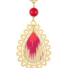 Orecchino singolo in argento galvanizzato oro, antiche sete fiammate e pietre naturali. Lunghezza 7,5 cm. Chiusura perno e farfalla.