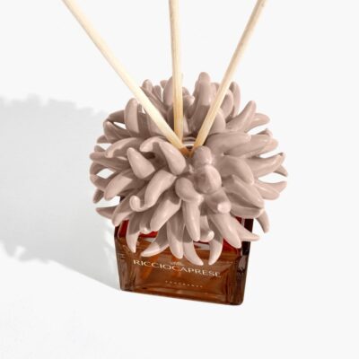 IL profumatore Riccio Caprese è un profumatore per ambienti dal design suggestivo e moderno a forma di anemone. interamente realizzato a mano, da eccellenti artigiani partenopei. Scultura in ceramica smaltata con miscele di colori diversi, poggiata su una base di vetro che contiene esclusive fragranze, diffuse nell’ambiente da bastoncini di pregiato midollino. Scegli il colore della scultura e seleziona il formato e la fragranza del tuo Riccio caprese Fragranze.