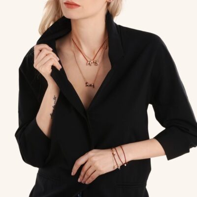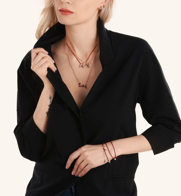 Ciondolo in oro rosa 9 kt e smalto rosso. Cordino nero di presentazione incluso.