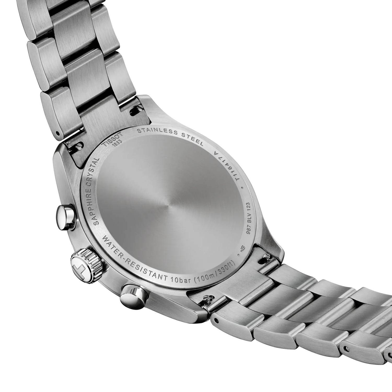 Il Tissot Chrono L entra a far parte della famiglia Tissot XL con cassa da 42 mm. Ispirato al Chrono XL, questo nuovo orologio è perfetto per chi cerca un cronografo sportivo ed elegante, caratterizzato da tecnologia svizzera e stile moderno. Il movimento cronografo al quarzo G10.212 garantisce precisione e affidabilità. L’orologio è inoltre impermeabile fino a 10 bar (100 metri / 330 piedi) e assicura un’ottima leggibilità anche in condizioni di scarsa illuminazione grazie al rivestimento Super-LumiNova® sulle lancette a forma di ago. I cinturini e i bracciali sono intercambiabili grazie al pratico sistema di cambio rapido Tissot, che permette di scegliere tra un’ampia gamma di cinturini compatibili e personalizzare l’orologio in base allo stile o all’occasione. Scopri questo cronografo da 42 mm con quadrante blu e raffinato bracciale in acciaio inox.
