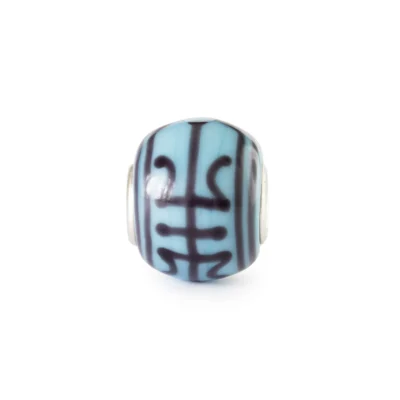 Un intenso sfondo turchese con profonde linee indaco che circondano la perla in un motivo senza tempo di forza e resistenza.