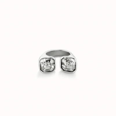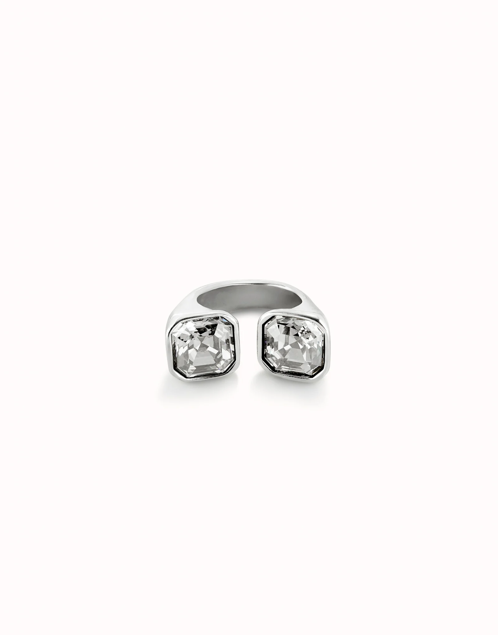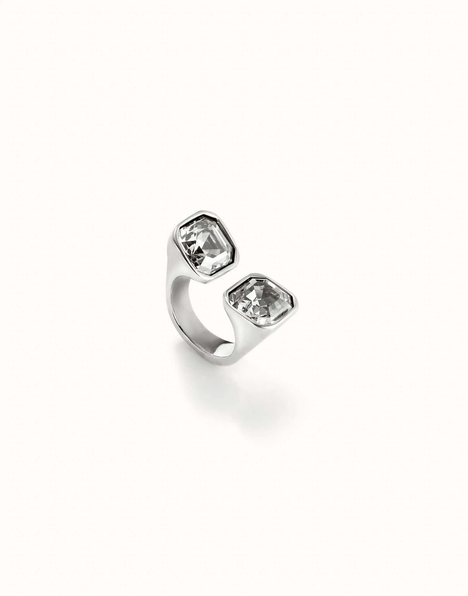 Anello placcato argento Sterling con cristallo sfaccettato bianco alle estremità. Prodotto in Spagna con un processo artigianale al 100%.