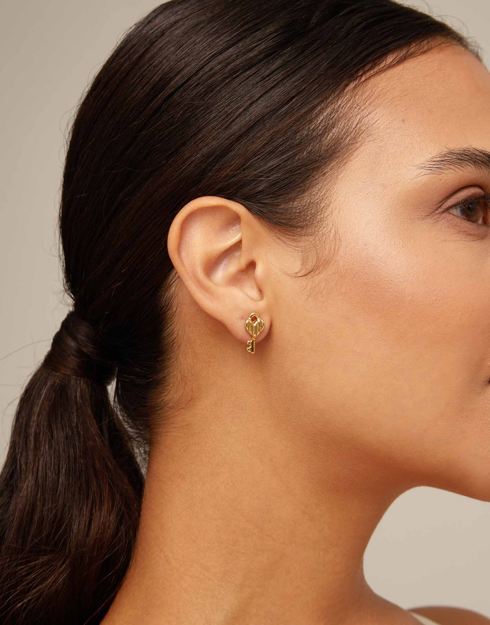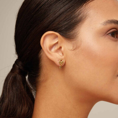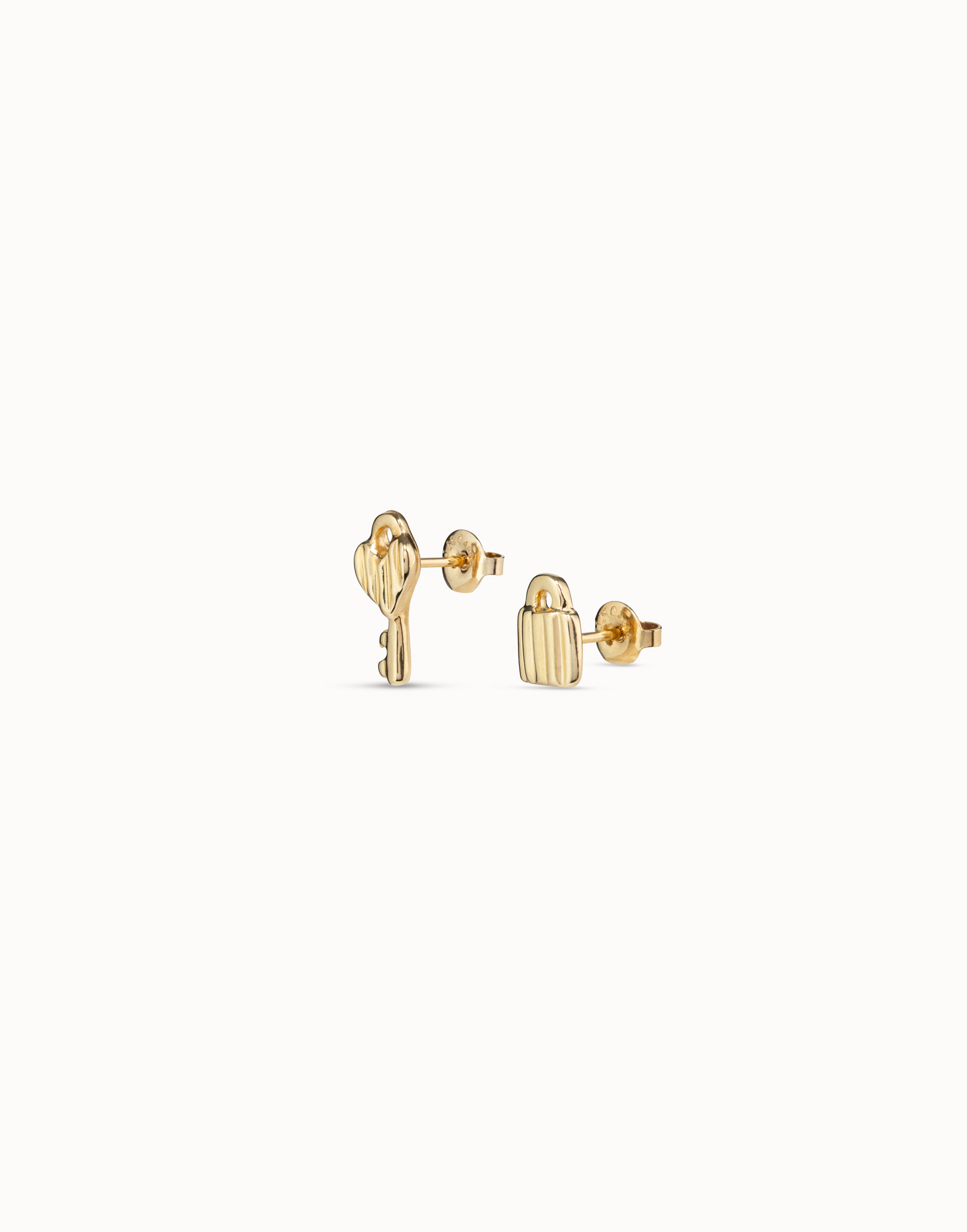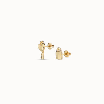 Orecchini Stud della collezione Confident. Uno di essi possiede il design di un lucchetto e l’altro il design di una chiave, in modo da rappresentare due amuleti che custodiranno i tuoi segreti e di porteranno fortuna. Realizzati a mano in Spagna, con materiali di alta qualità. La collezione Confident rappresenta indipendenza, forza e fiducia in sé stessi. Un tesoro da proteggere e da scoprire. Una collezione ricca di simbolismi che ci accompagnerà, tenendo sottochiave i nostri sentimenti.