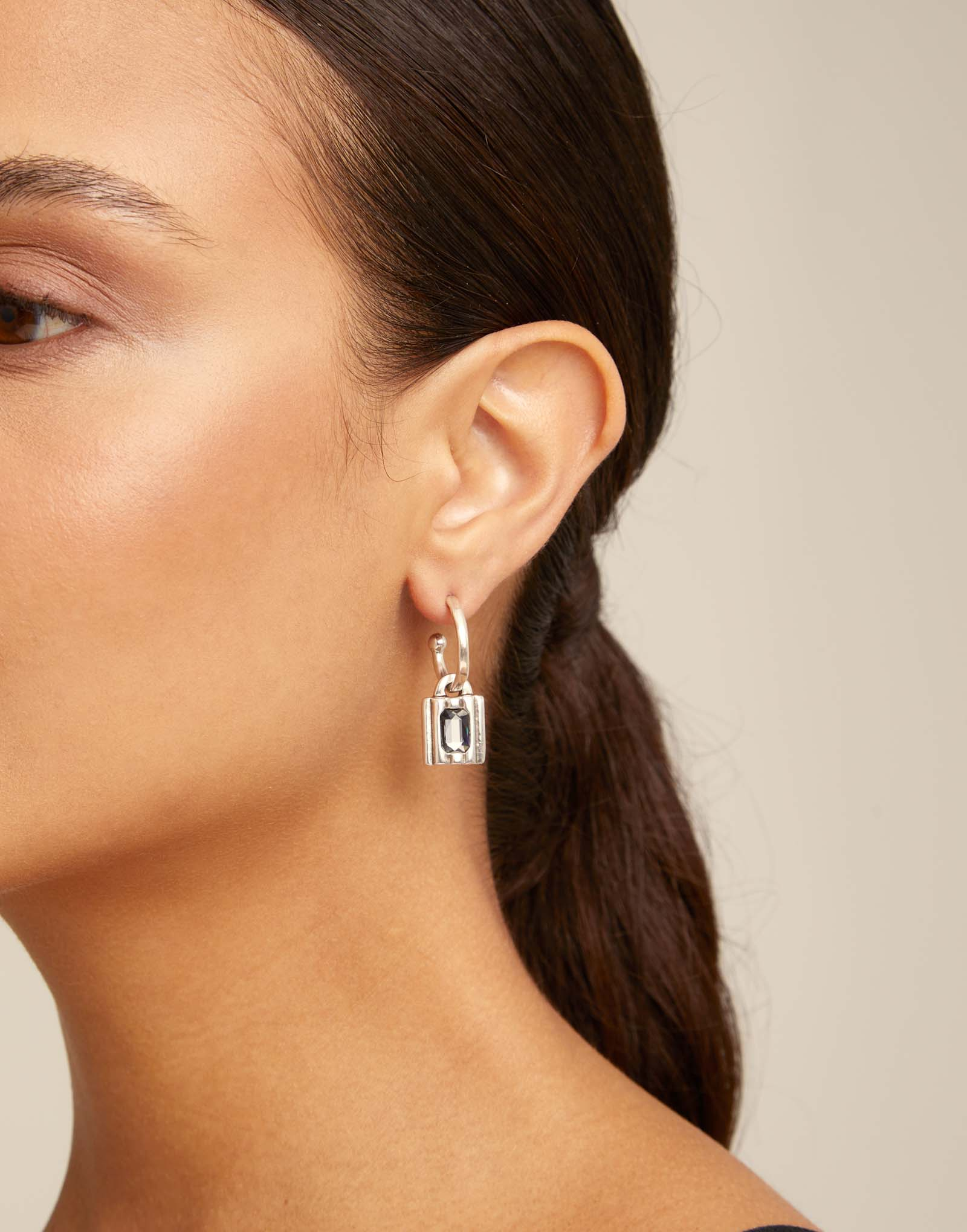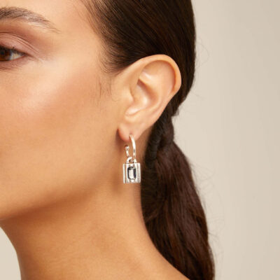 Orecchini uno forma di lucchetto e uno cuore chiave , decorati con un cristallo sfaccettato di colore grigio argento all’interno. Un gioiello perfetto da indossare in ogni occasione come portafortuna. Realizzati artigianalmente in Spagna. La collezione Confident rappresenta indipendenza, forza e fiducia in sé stessi. Un tesoro da proteggere e da scoprire. Una collezione ricca di simbolismi che ci accompagnerà, tenendo sottochiave i nostri sentimenti.